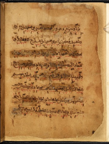 Karaite Book of Exodus - fragment - Holy Land or Egypt - 10th century - The Hebrew biblical text in the manuscript was penned in Arabic script. The vowels were added in red ink, while the accents and diacritical marks were penned in green.